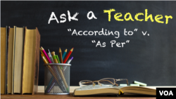 Hello! This week on Ask a Teacher, we will answer a question about the difference between the phrases “as per” and “according to.”