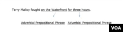 However, you can still see that you can build a long sentence from a simple starting point such as "Terry Malloy fought".