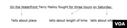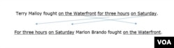 Now consider this sentence that tells about the fight scene in On the Waterfront: