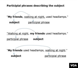 When participial phrases act as non-restrictive modifiers, they can move around in the sentence. A nonrestrictive modifier does not define a noun; instead, it only adds information or comments on the noun. You can read about these modifiers in another Everyday Grammar program.