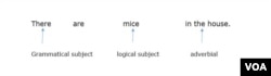 In the sentence, "There are mice in the house," the word there becomes the grammatical subject. "Mice" becomes the logical subject, and the adverb phrase, "in the house" remains the same.