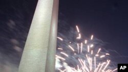 In Washington, for example, large crowds gather near the Washington Monument to listen to music and watch a huge fireworks show.