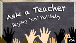 Thank you for your question. Most Americans speak directly and are not afraid to say “No” in many situations. But we do have ways to be polite -- or show respect for another’s feelings. The simplest way to be polite is to say, “No, thank you.” Let us look at some other polite ways to say “no.”